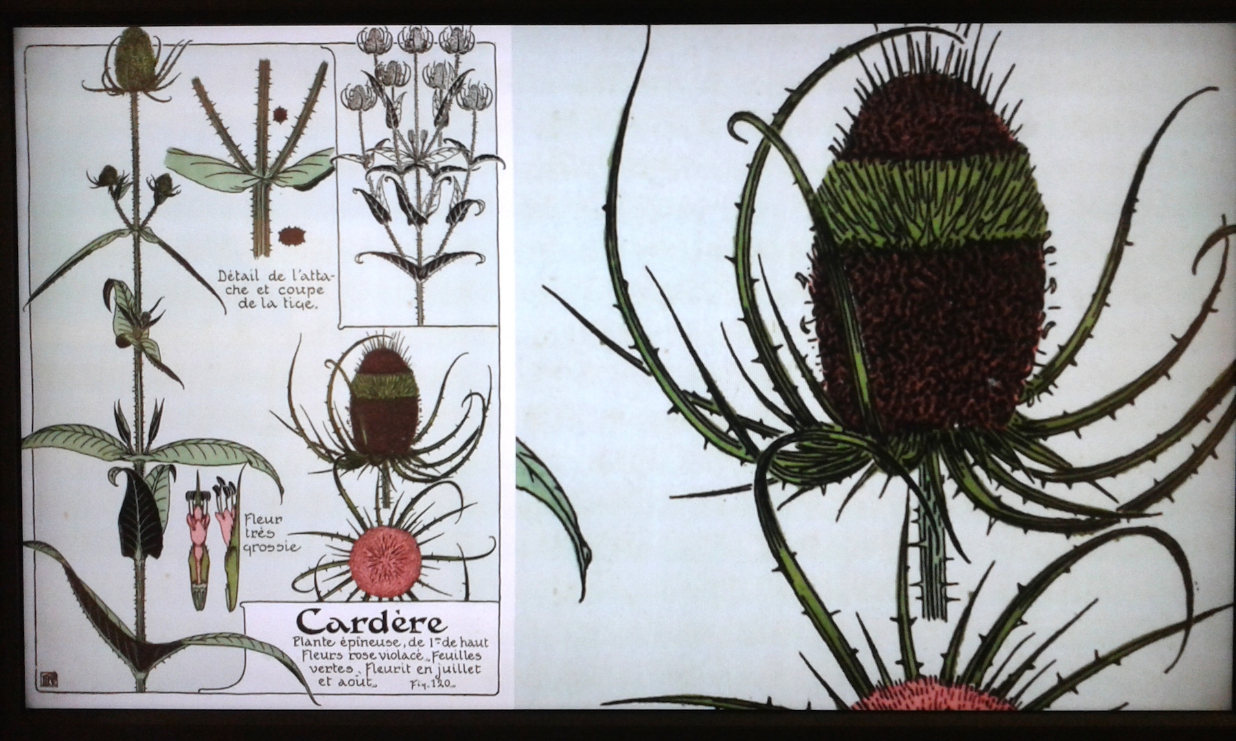Enciclopedie e manuali. In questi anni furono pubblicate tante enciclopedie e manuali che riproducevano studi di natura. Designer, architetti e costruttori li utilizzavano per le loro bozze. Gli artigiani combinavano l’osservazione diretta della natura con l’interpretazione di questi prototipi e creavano nuovi motivi ornamentali per l’architettura e le arti decorative. In mostra si possono osservare bellissime tavole che riproducono (in bianco e nero o a colori) fedelmente tutte le parti dei fiori, da rimanere incantati fino alla fine del filmato…