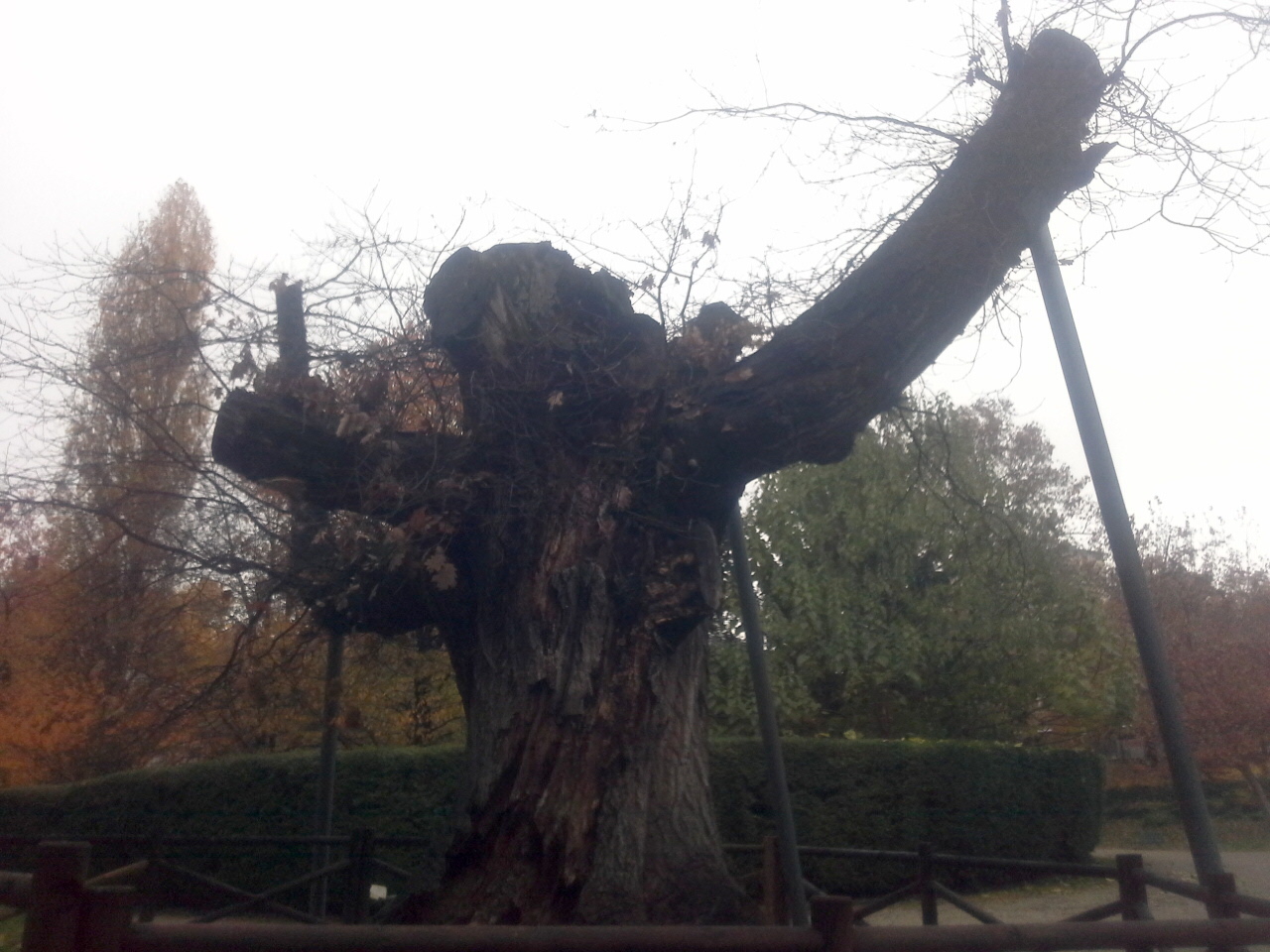 2 – La quercia rossa, ormai quasi morta. La più grande quercia rossa di Milano: 6 metri di circonferenza. Messa a dimora a fine Ottocento, è un tipo di albero che spesso si caria a causa di un fungo. Di origine nordamericana, la sua foglia ha il margine frastagliato (a differenza delle querce europee che lo hanno più tondeggiante)