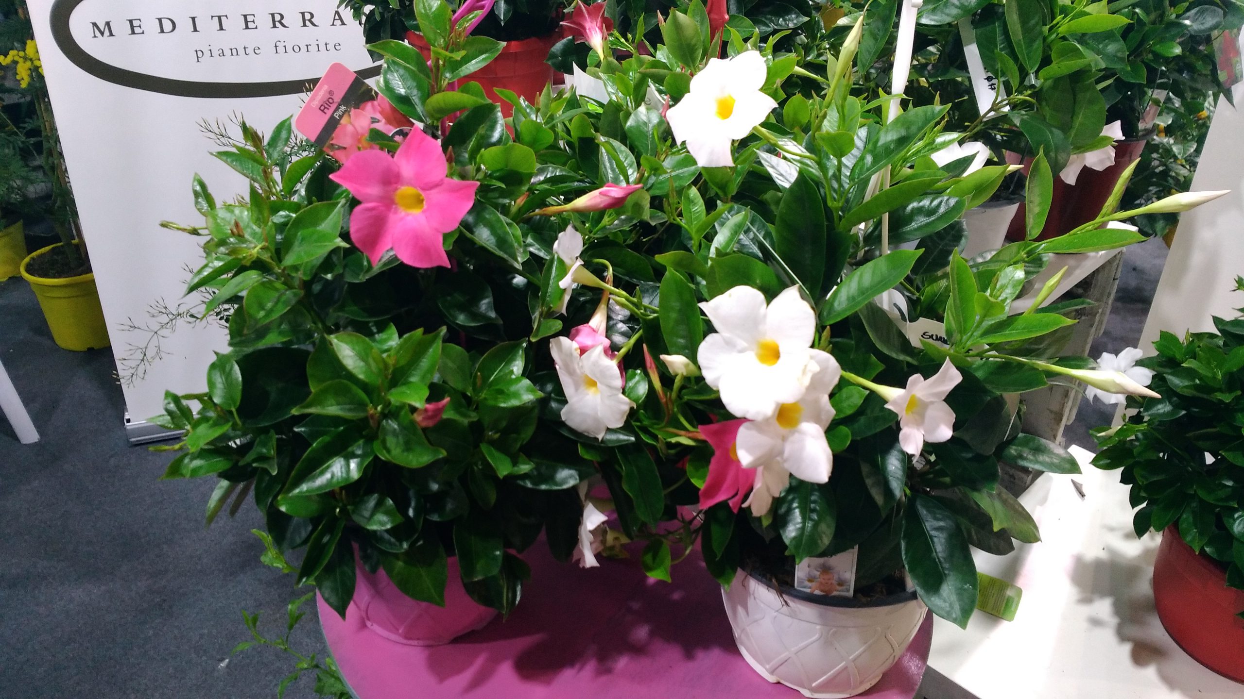 la dipladenia, è un fiore soprattutto da esterno, ma nella zona di Milano non è tanto facile da coltivare. Vuole pieno sole e un’area ben riparata. Spesso si arrampica su muretti e recinzioni. I suoi fiori sono di molti colori, tutti vivaci: bianchi, rosa, rossi.