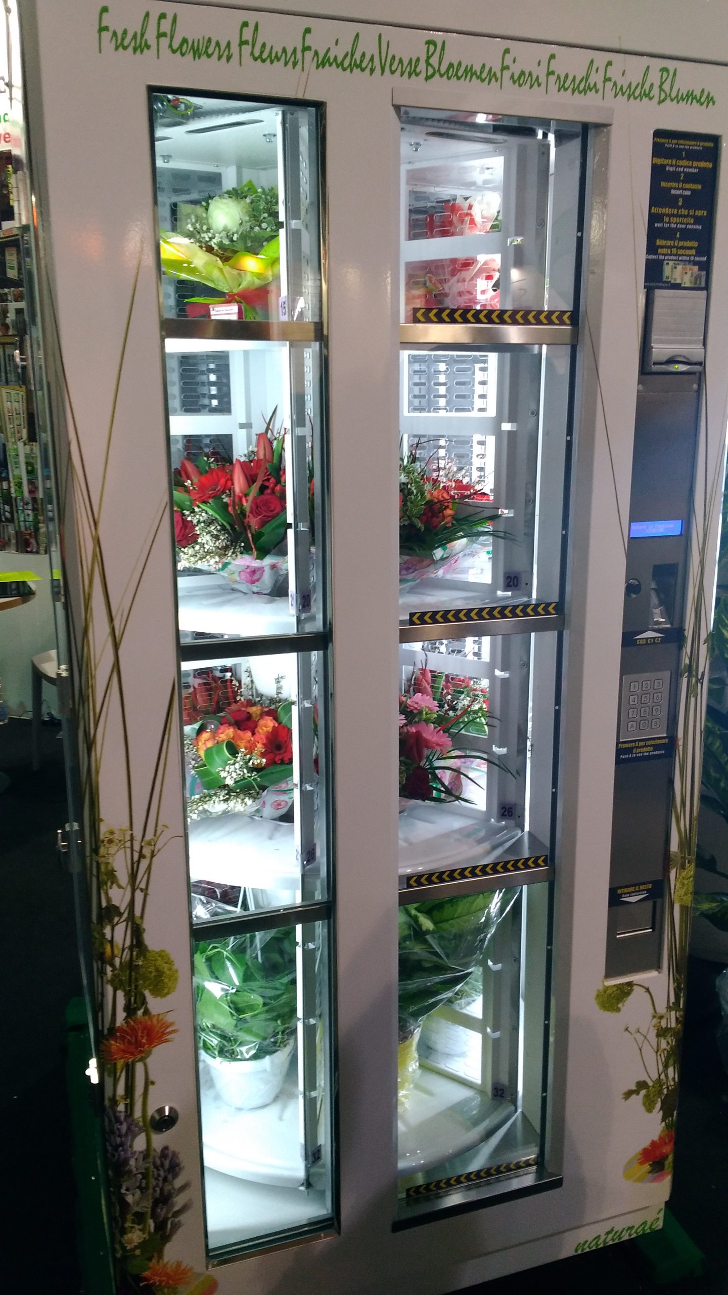 La terza novità, che ho trovato in un unico stand, è il distributore di fiori e piante. Si tratta di un box simile a quello che distribuisce acqua minerale o snack nei bar o nelle stazioni della metropolitana. Potrebbe essere una buona idea per i centri storici delle città, nei pressi di catene di distribuzione oppure all’ingresso di piccoli cimiteri di paese, spesso sprovvisti di ogni tipo di fiore. All’estero – mi dicono- è già diffuso: in Italia non mi è ancora capitato di vederne uno.