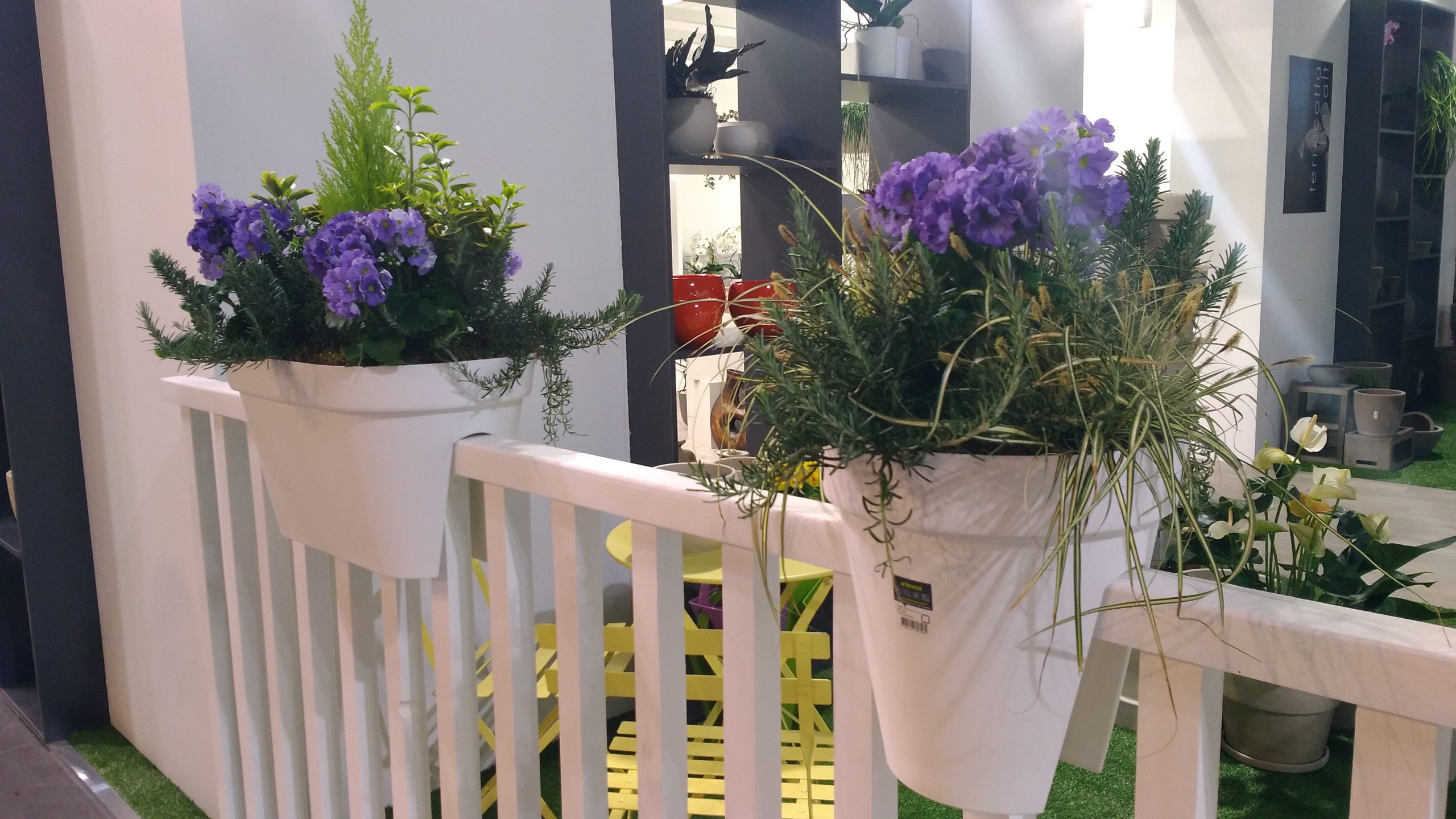 La seconda novità, presente in alcuni stand, sono i vasi in plastica green colorata che si incastrano al balcone. Non servono più ganci e ferretti per far aderire il vaso al balcone, ma è il vaso stesso che si sdoppia per collocarsi meglio sulle ringhiere dei nostri balconi e terrazzi.