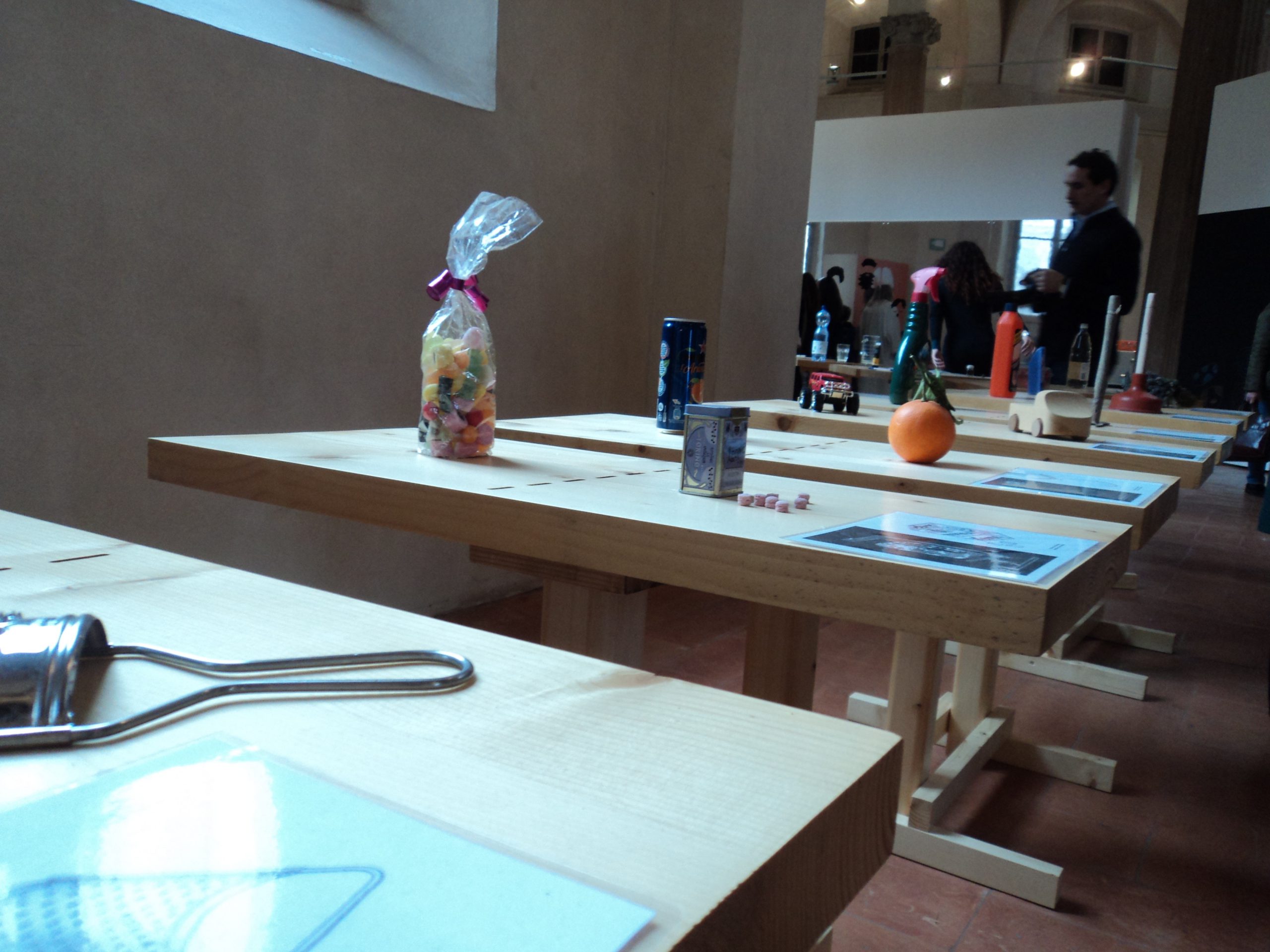 Questa mostra è costituita da 24 coppie di oggetti, ogni coppia risponde ad una funzione, come mangiare, bere, lavare, scrivere, in modo “essenziale” oppure “eccessivo”. Ho trovato molto bello, semplice, chiaro l’allestimento e mi è piaciuto il fatto che l’idea sia nata dalla domanda di un bambino sul dentifricio, un oggetto di semplice uso quotidiano, come racconta Paolo Ulian: