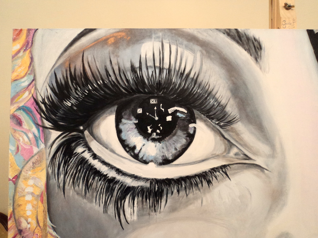 L’orologio raffigurato nella pupilla dell’occhio, forse per indicare il trascorrere del tempo che si vede nelle nostre espressioni.