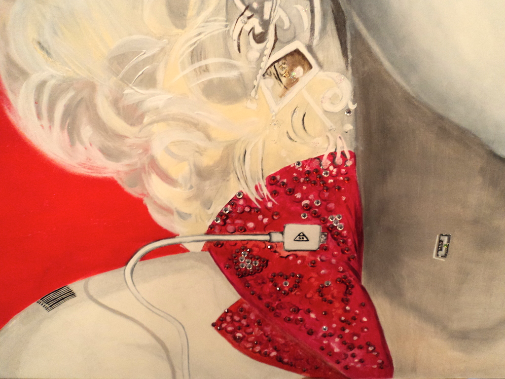 E poi nel ritratto di Marilyn 2.0, un codice a barre, un cavo e una porta USB che mi hanno riportato al tempo presente.