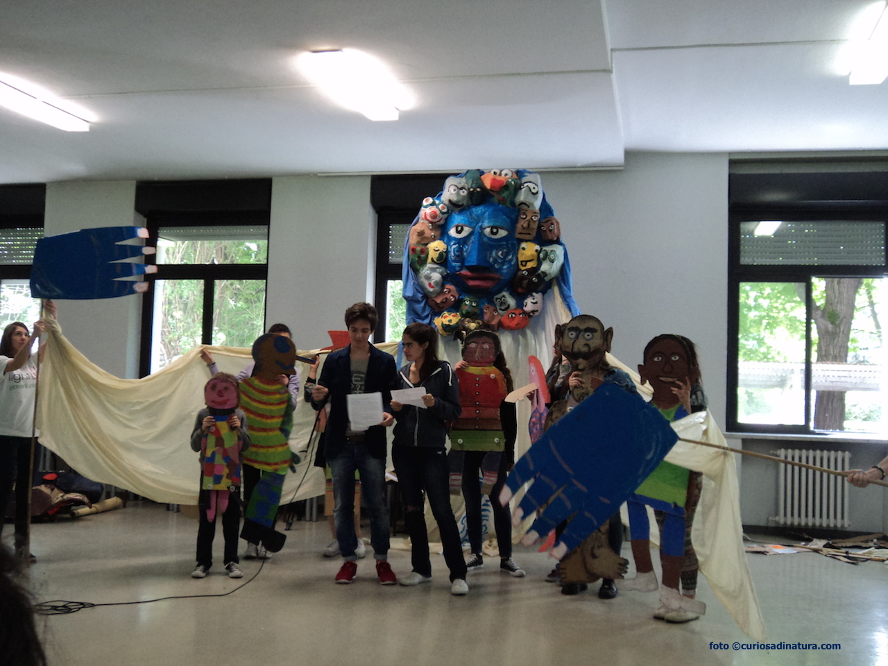 Siamo giunti alla fine della lunga mattinata e l’Associazione “Il Razzismo è una brutta storia” coinvolge i ragazzi delle scuole e ci propone degli spezzoni del loro spettacolo intitolato “La Favola del Paese di Cuccagna”: molto bello e coinvolgente e quanto mai attuale. Questo è un breve video della parte iniziale dello spettacolo che ho girato io stessa con una semplice fotocamera.