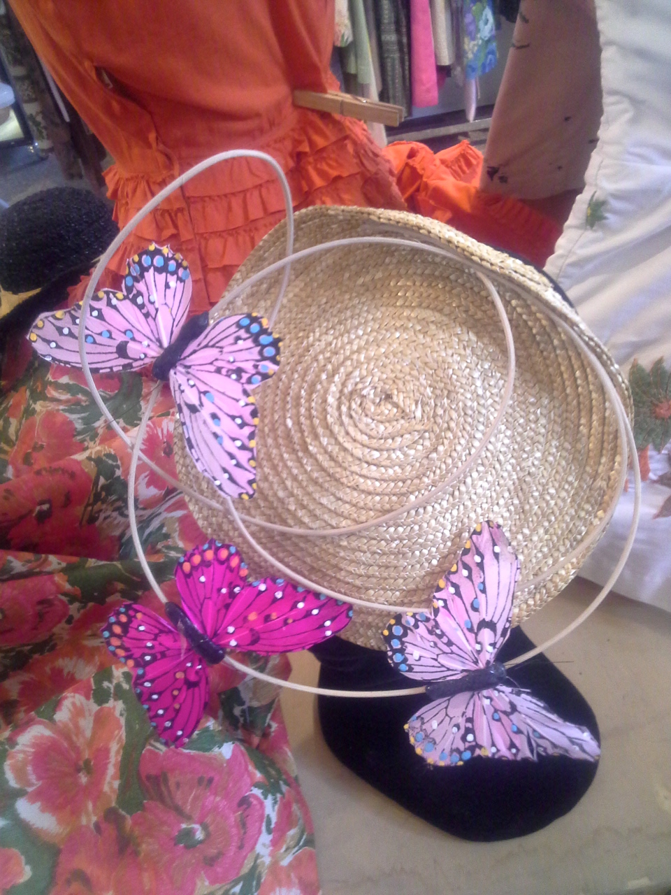4. Accessori: cappelli. Quanto mi piacciono i cappelli, specie quelli a falda larga… Forse perché fanno un po’ “diva” e si vedono così poco in giro… Guardate che belli questi! Il cappellino “tutto farfalle” di Shabby Chic Vintage e il verde del cappello floreale di A.N.G.E.L.O.