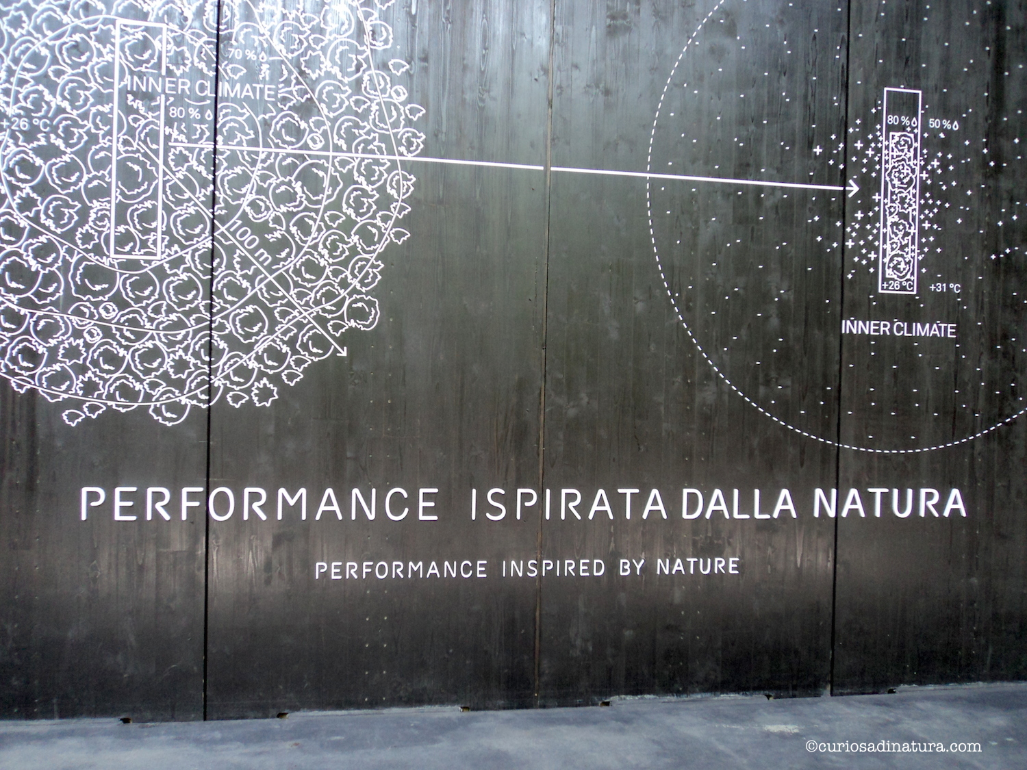 Il padiglione Austria, infatti, ci racconta che sarebbe possibile applicare gli stessi concetti di spazio verde del bosco ad ambienti urbani, quali i giardini pubblici o privati. Con il sistema qui presentato, un ibrido tra natura e tecnologia, si ha un buon rendimento: 600 metri quadrati di padiglione equivalgono ad 1 ettaro di bosco in natura.