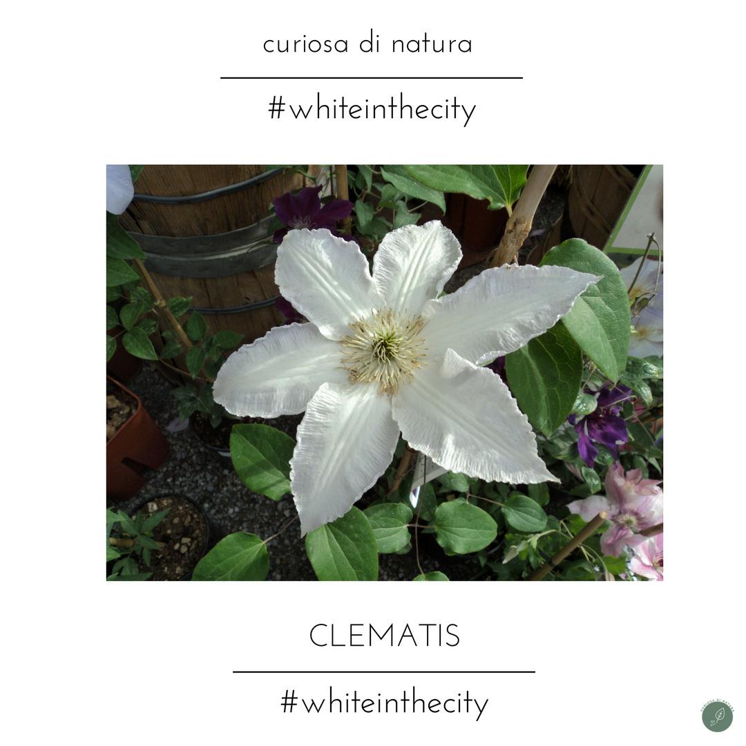La clematis esiste in molte varietà e quella bianca è davvero particolare. Si tratta di un rampicante sempreverde, che fiorisce tra maggio e giugno, ama il terreno fresco ed umido e il sole. Nel linguaggio dei fiori significa fortuna, buon auspicio e gioia.